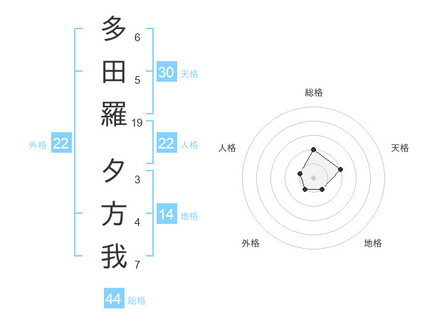 多田羅 夕方我さんを姓名の画数から五運を鑑定