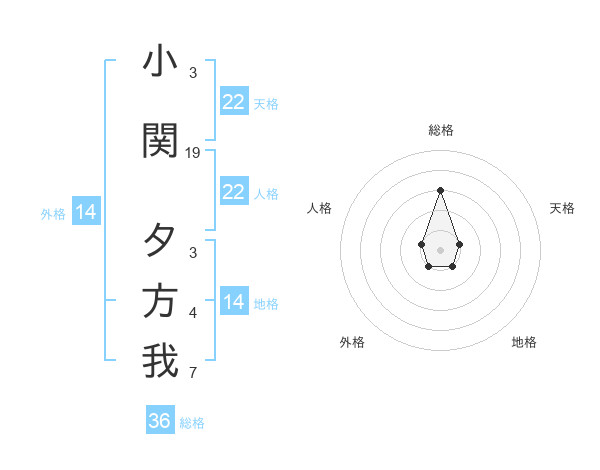 小関 夕方我さんを姓名の画数から五運を鑑定