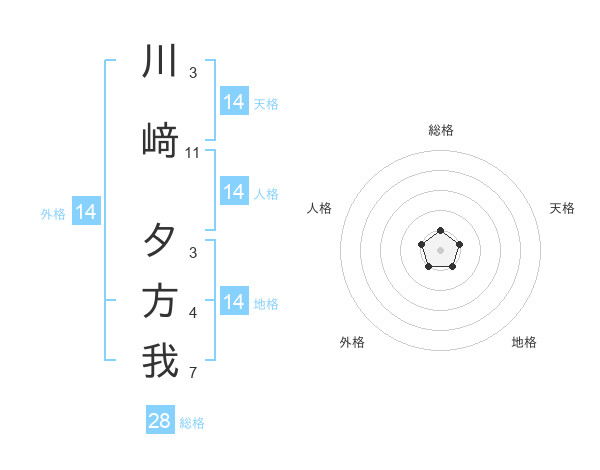 川﨑 夕方我さんを姓名の画数から五運を鑑定