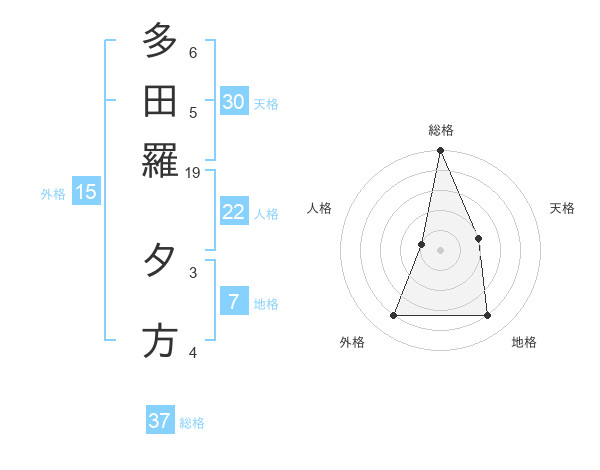 多田羅 夕方さんを姓名の画数から五運を鑑定