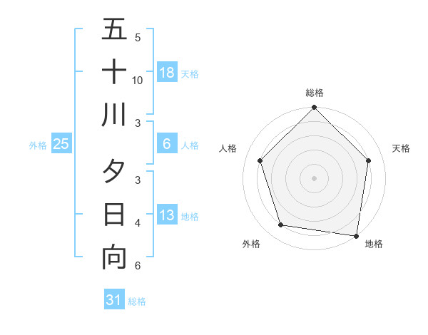 五十川 夕日向さんを姓名の画数から五運を鑑定