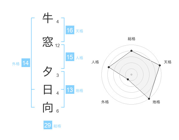 牛窓 夕日向さんを姓名の画数から五運を鑑定