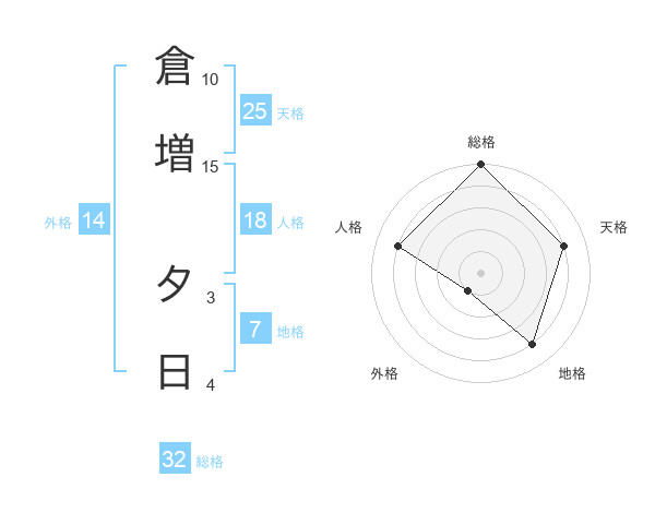 倉増 夕日さんの総格は32画の5点!