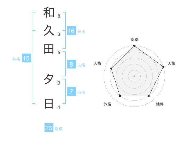 和久田 夕日さんの天格は16画の5点!
