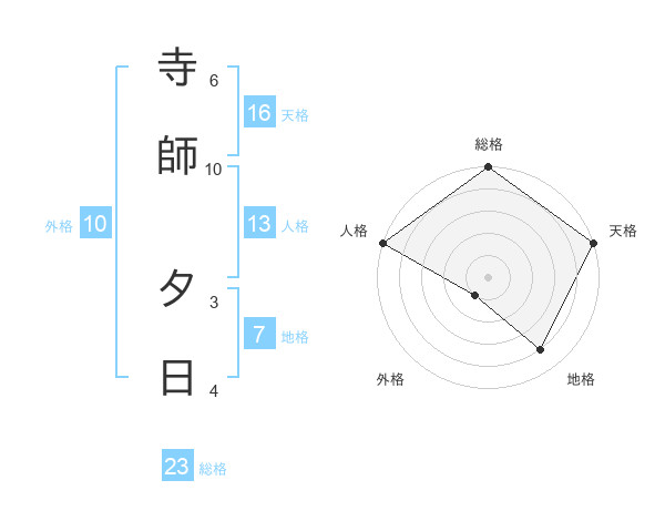 寺師 夕日さんの天格は16画の5点!