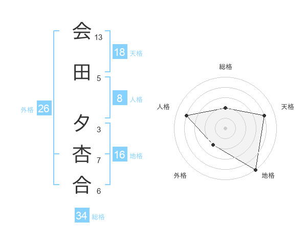 会田 夕杏合さんを姓名の画数から五運を鑑定