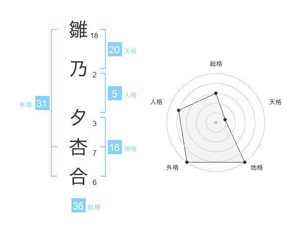雛乃 夕杏合さんを姓名の画数から五運を鑑定