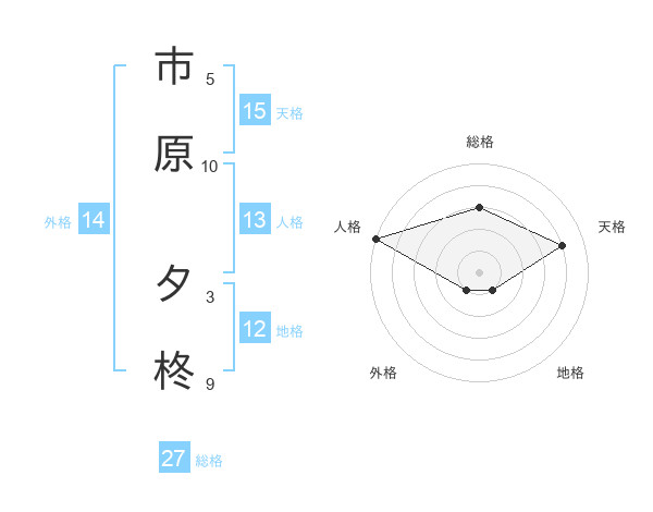 市原 夕柊さんの総格は27画の3点!