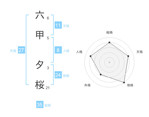 六甲 夕桜さんを姓名の画数から五運を鑑定