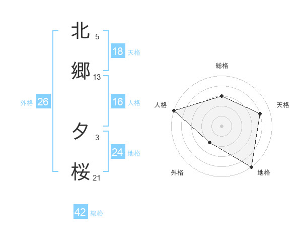 北郷 夕桜さんを姓名の画数から五運を鑑定