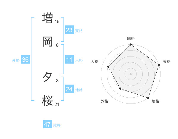増岡 夕桜さんの総格は47画の5点!