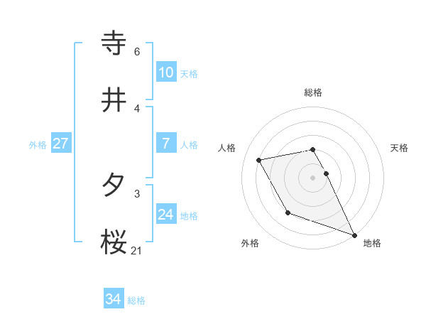 寺井 夕桜さんの総格は34画の2点!