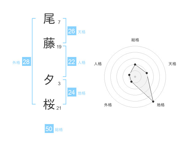 尾藤 夕桜さんの総格は50画の2点!