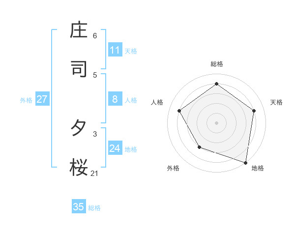 庄司 夕桜さんを姓名の画数から五運を鑑定