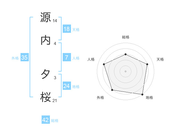 源内 夕桜さんの総格は42画の3点!