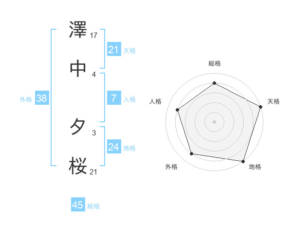 澤中 夕桜さんの総格は45画の4点!