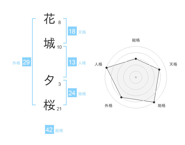 花城 夕桜さんの総格は42画の3点!