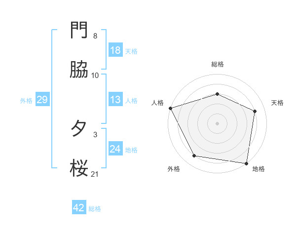 門脇 夕桜さんを姓名の画数から五運を鑑定