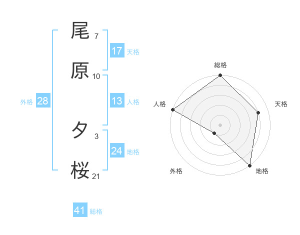 尾原 夕桜さんの天格は17画の4点!