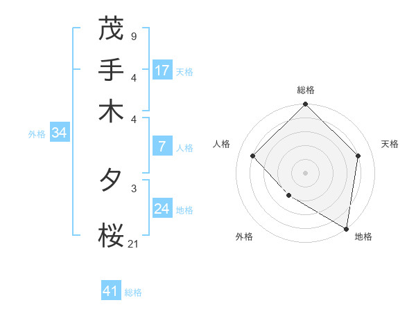 茂手木 夕桜さんを姓名の画数から五運を鑑定