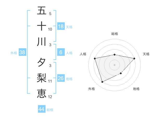 五十川 夕梨恵さんを姓名の画数から五運を鑑定