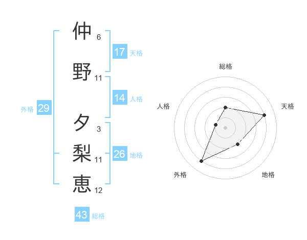 仲野 夕梨恵さんを姓名の画数から五運を鑑定