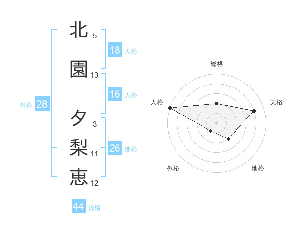 北園 夕梨恵さんの天格は18画の4点!