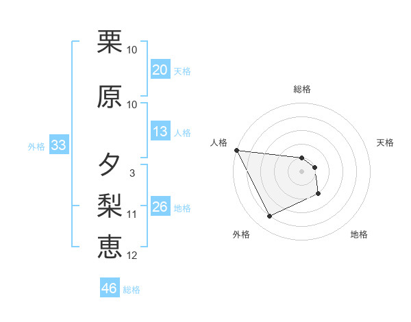 栗原 夕梨恵さんを姓名の画数から五運を鑑定