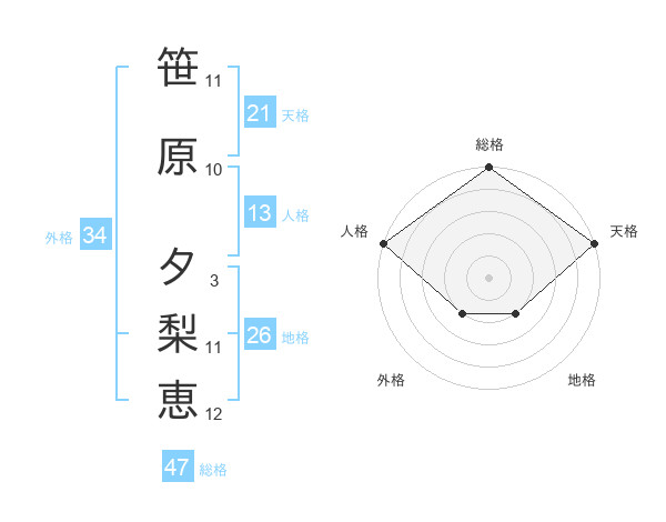 笹原 夕梨恵さんを姓名の画数から五運を鑑定