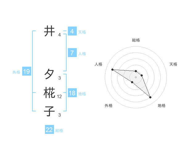 井 夕椛子さんを姓名の画数から五運を鑑定