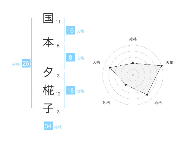国本 夕椛子さんを姓名の画数から五運を鑑定