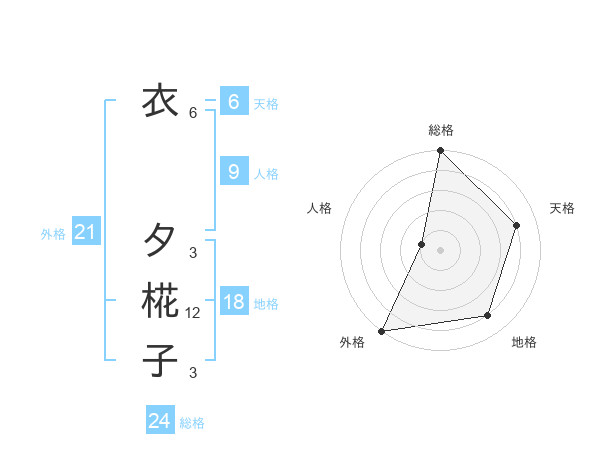 衣 夕椛子さんを姓名の画数から五運を鑑定