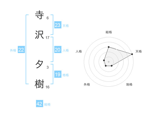 寺沢 夕樹さんを姓名の画数から五運を鑑定