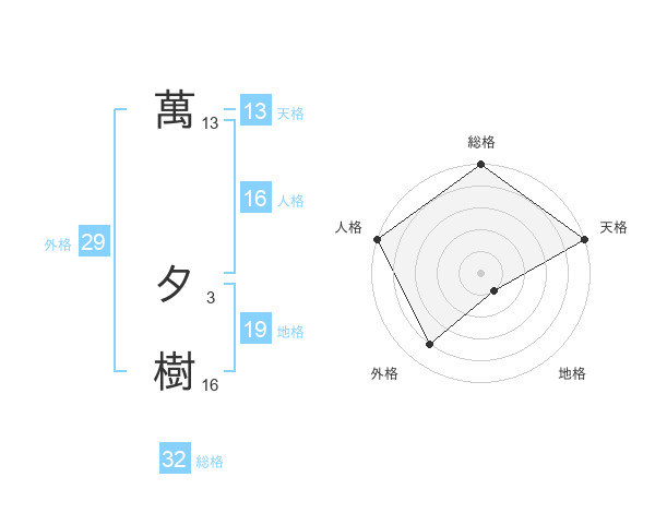 萬 夕樹さんの外格は29画の4点!
