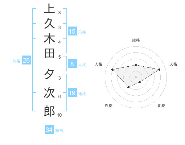 上久木田 夕次郎さんの総格は34画の2点!