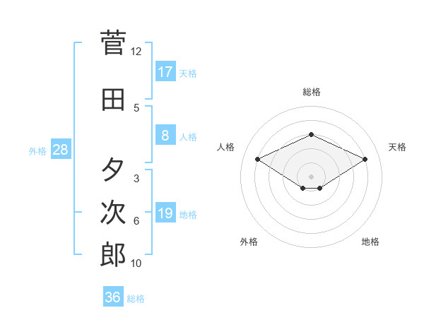 菅田 夕次郎さんの総格は36画の3点!