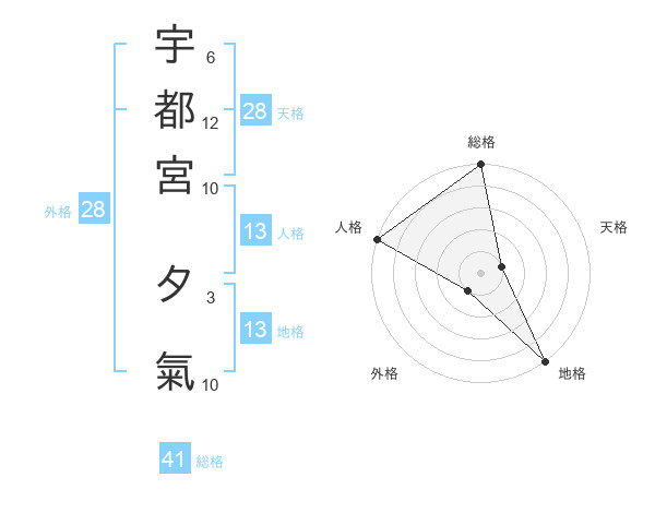 宇都宮 夕氣さんの総格は41画の5点!