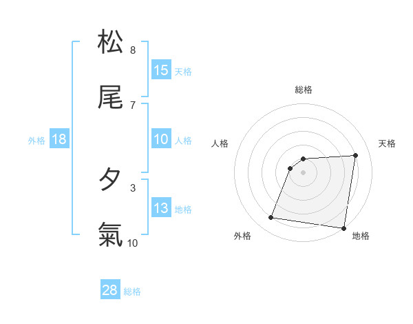 松尾 夕氣さんを姓名の画数から五運を鑑定