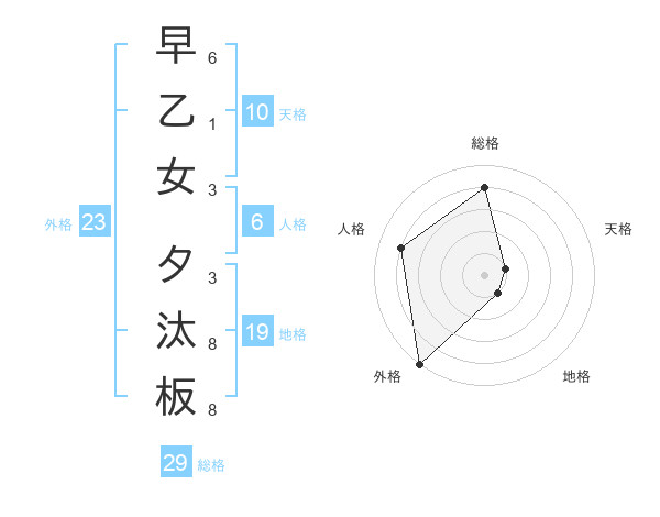 早乙女 夕汰板さんを姓名の画数から五運を鑑定