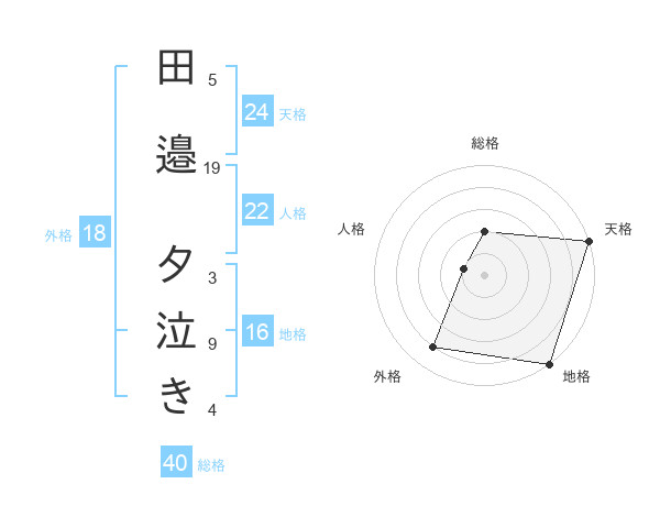 田邉 夕泣きさんを姓名の画数から五運を鑑定