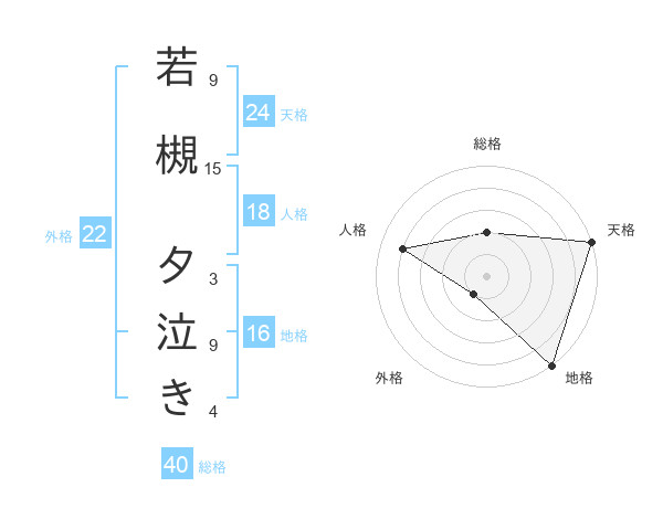 若槻 夕泣きさんを姓名の画数から五運を鑑定