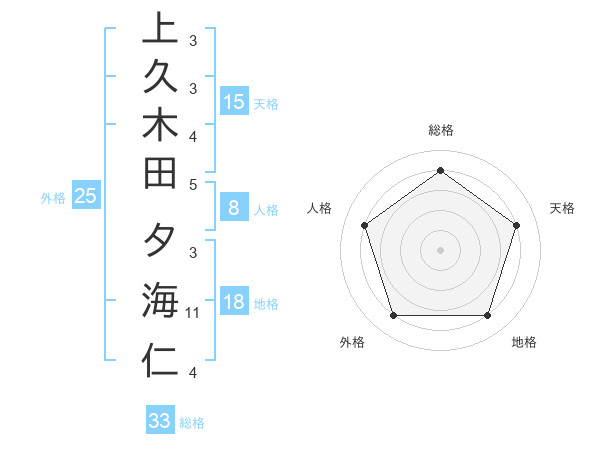 上久木田 夕海仁さんの総格は33画の4点!
