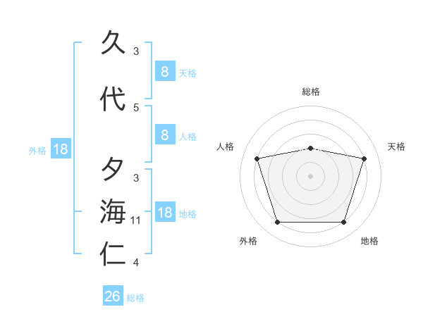 久代 夕海仁さんを姓名の画数から五運を鑑定