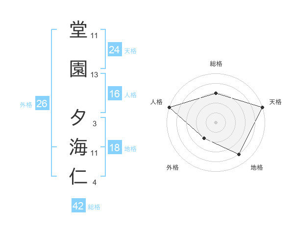 堂園 夕海仁さんを姓名の画数から五運を鑑定