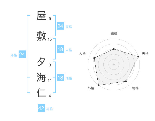 屋敷 夕海仁さんを姓名の画数から五運を鑑定