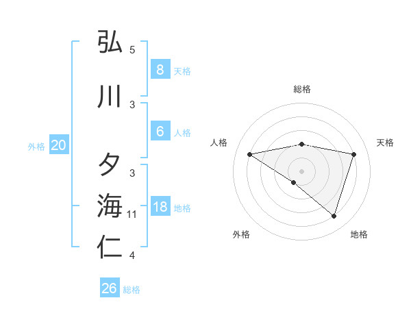 弘川 夕海仁さんの天格は8画の4点!