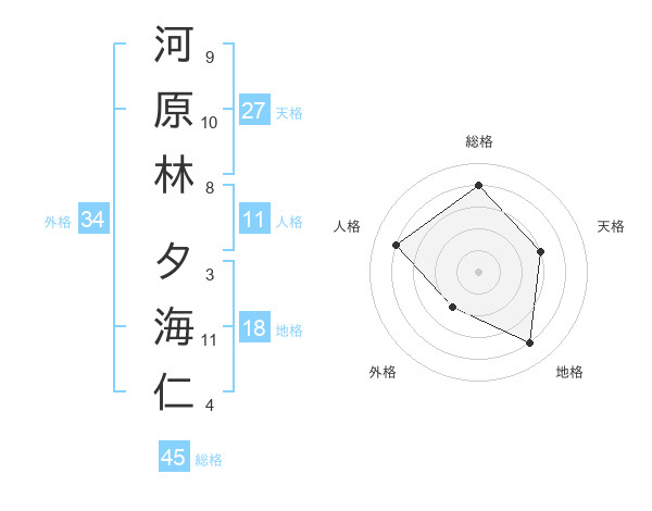 河原林 夕海仁さんを姓名の画数から五運を鑑定