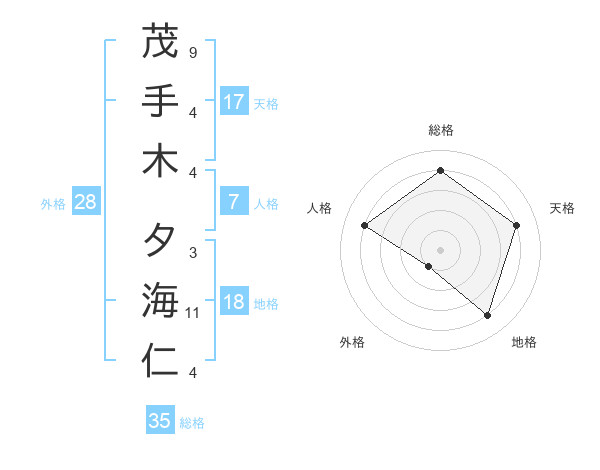 茂手木 夕海仁さんの天格は17画の4点!