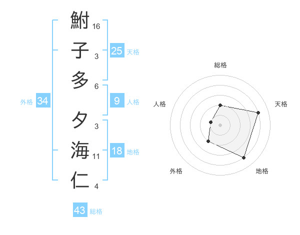 鮒子多 夕海仁さんの外格は34画の2点!