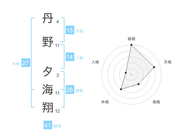 丹野 夕海翔さんを姓名の画数から五運を鑑定